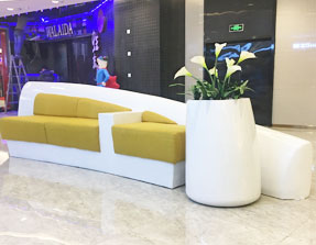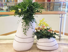 藝術(shù)花盆花器通過它的材料、造型、顏色來體現(xiàn)藝術(shù)設(shè)計(jì)理念,是商場(chǎng)美陳中的一個(gè)重要休閑景觀,凈化室內(nèi)空氣點(diǎn)綴裝飾商業(yè)環(huán)境